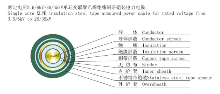 銅芯交聯(lián)聚乙烯絕緣鋼帶鎧裝聚氯乙烯護套電力電纜 |